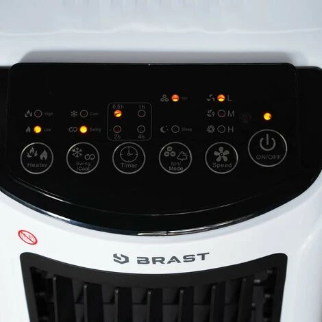 D’autres fonctions telles que la télécommande complète, le mode veille, la minuterie de 7,5 heures, 3 vitesses de ventilation différentes ainsi que la fonction de pivotement électrique complètent agréablement le profil de cette oase de fraicheur BRAST.