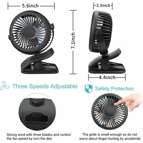 - 3 vitesses réglables – Ventilateur USB silencieux : notre ventilateur de table USB est équipé d’un seul interrupteur pour une utilisation facile et flexible. 3 modes de vent fort, la vitesse 1 est le vent le plus faible, la vitesse 2 est moyenne et la vitesse 3 est maximale. (Utilisez un moteur sans balais puissant, vitesse maximale jusqu’à 3500 tr/min, faible bruit jusqu’à 30-36 dB)