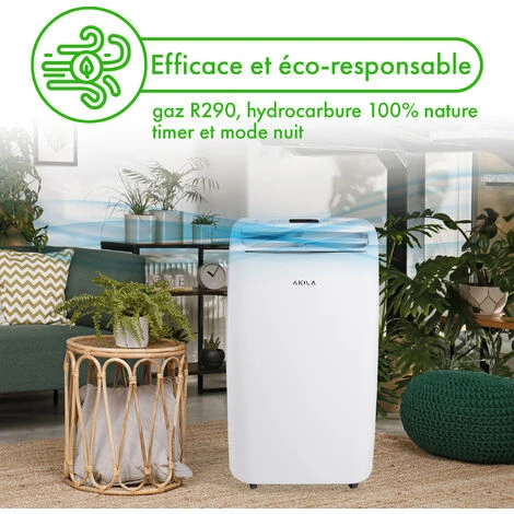 Eco-responsable et performant: ce climatiseur utilise le gaz R290 comme réfrigérant, hydrocarbure 100% naturel. Ce gaz possède d’excellentes propriétés thermodynamiques, tout en ayant un faible impact sur l’environnement. Il existe aussi un mode timer et un mode nuit pour réduire votre consommation.