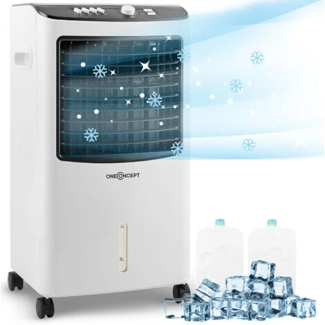 RAFRAICHISSEUR D’AIR MULTIFONCTIONS 3 EN 1 : Ce climatiseur mobile silencieux 3 en 1 oneConcept contient un ventilateur, un humidificateur et un rafraîchisseur d’air. Il vous suffit de l’allumer pour vous rafraîchir n’importe où dans la maison.