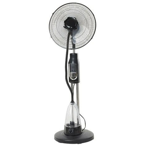 Rafraichissez vous grâce à ce 2-en1 ventilateur/brumisateur ! 7 jets de brumisation intégrés sur une grille de 43cm. Réservoir d’eau de 2L pour une brume de plus de 7 heures. 3 vitesses. Réglable à 90° avec télécommande. Consommation d’eau 0,28L/h.A monter soi même.